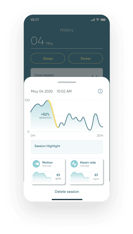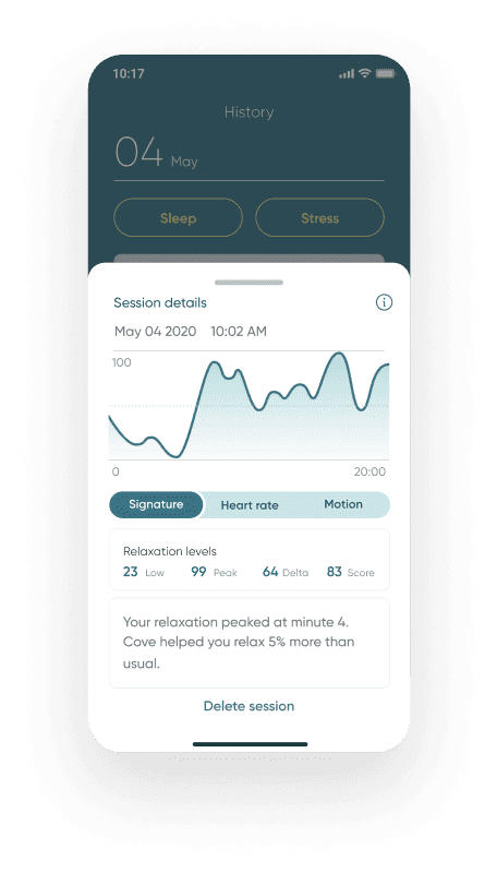 Cove helps people relax and sleep better, but to notice these effects, it took on average 10 days. This was too long and people returned their devices. By showing users their progress over time, we saw a 300% increase in people who viewed their session biometrics, which contributed to a 10% decreased in returns.
