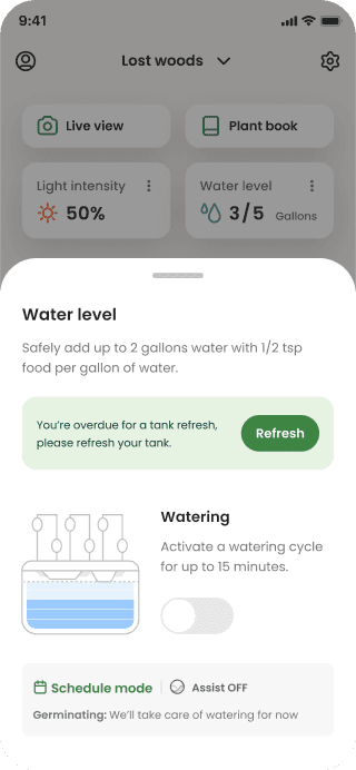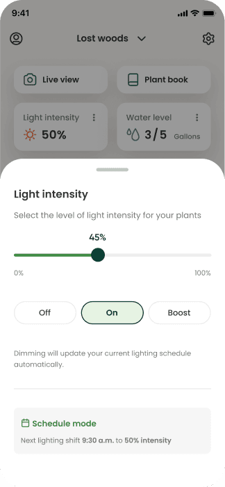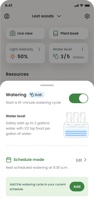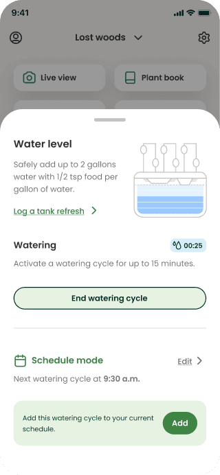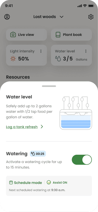 Gardyn’s app widgets enable users to control their light and watering schedules, but the functionality was a bit cumbersome. Scheduling errors were higher than expected which prevented peoples plants from thriving.