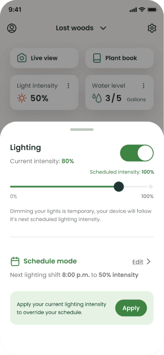 We interviewed our users and found that our widgets, while they provided full control, didn’t communicate the downstream effects that alterations to the schedule might have on a gardyn. Users were also confused about how changes on the widget impacted scheduling versus being a temporary adjustment