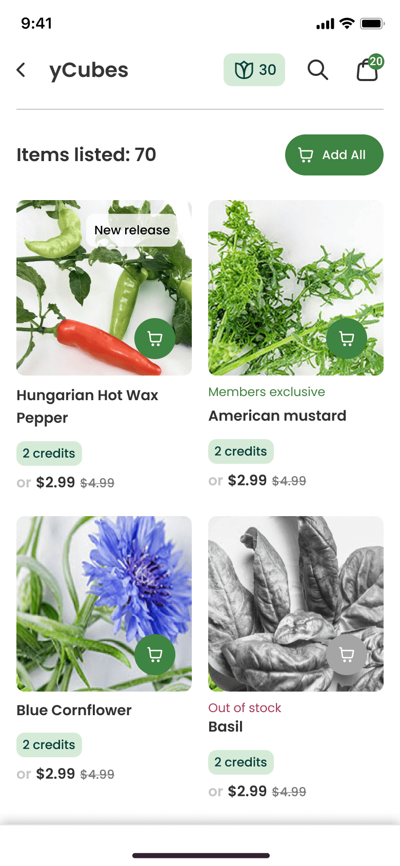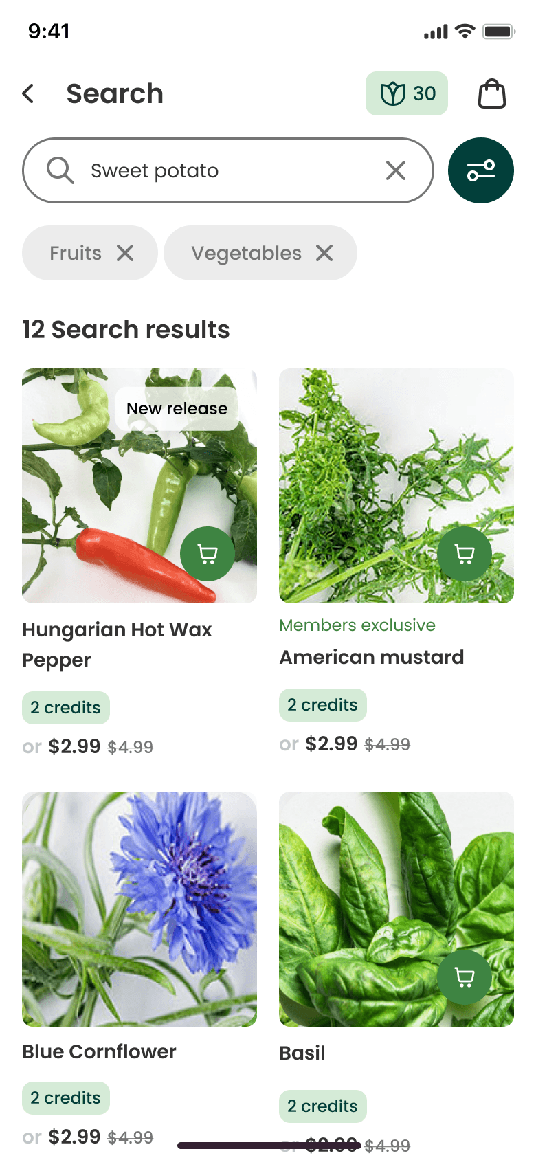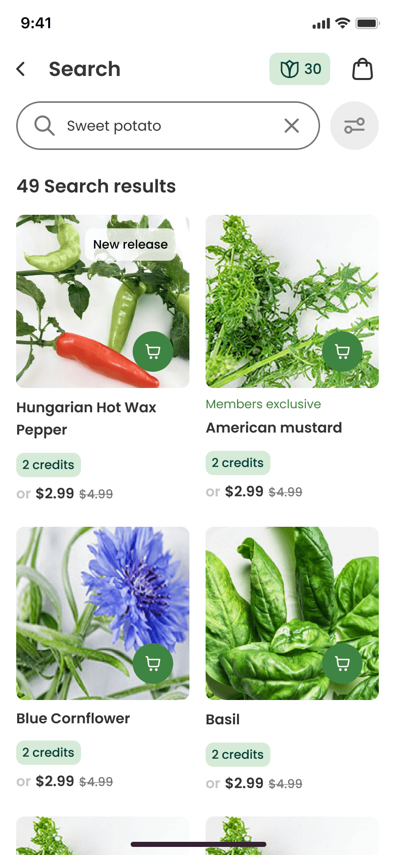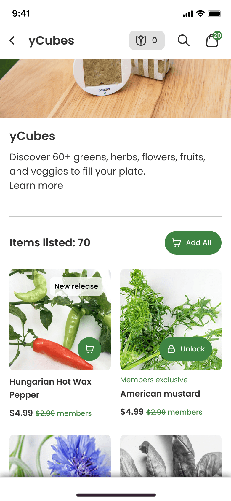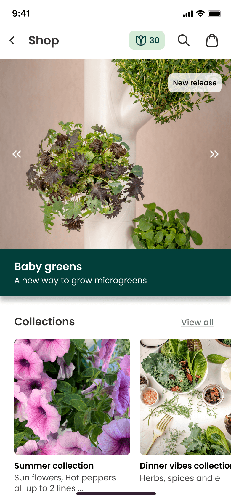 To help users find what they want and to discover new plant varieties, we grouped plants into collections. We also introduced a “Hero” section with featured items to help the business highlight specific products.