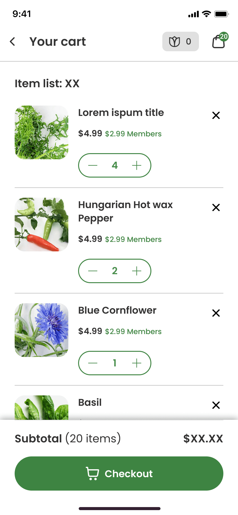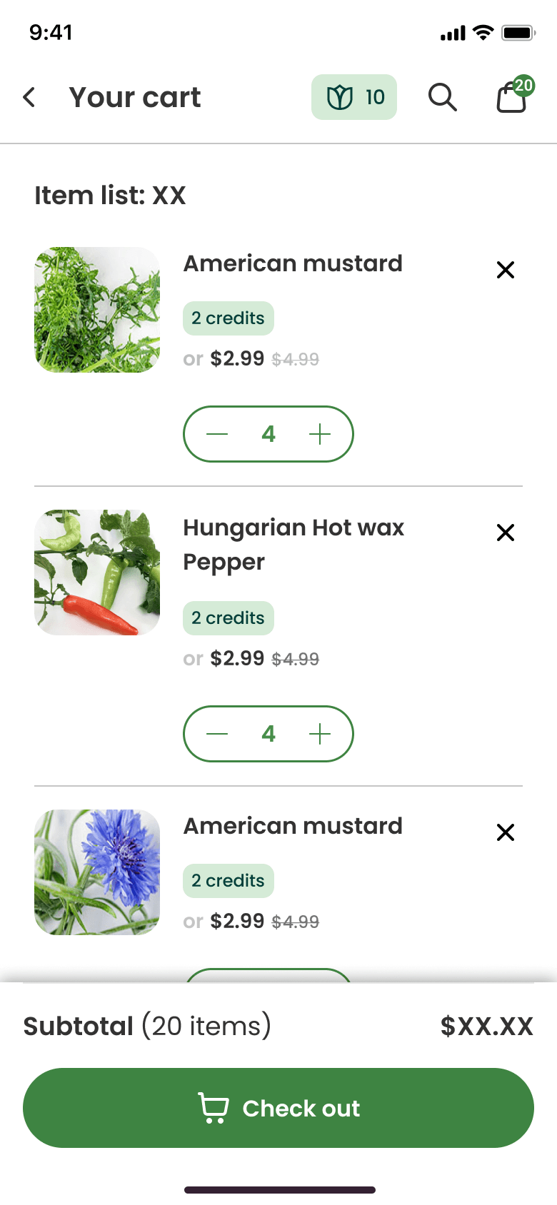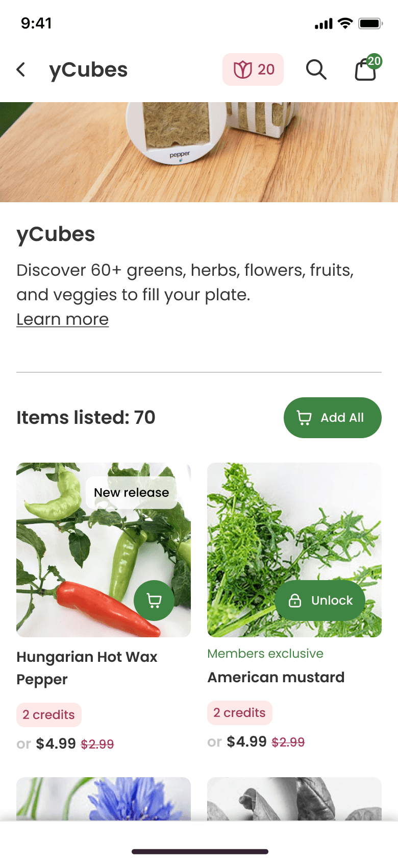Gardyn's shop posed an interesting challenge in that users have the option to use a combination of credits and dollars for their plant purchases. Members receive credits as part of their membership, while non-members make purchases using dollars.